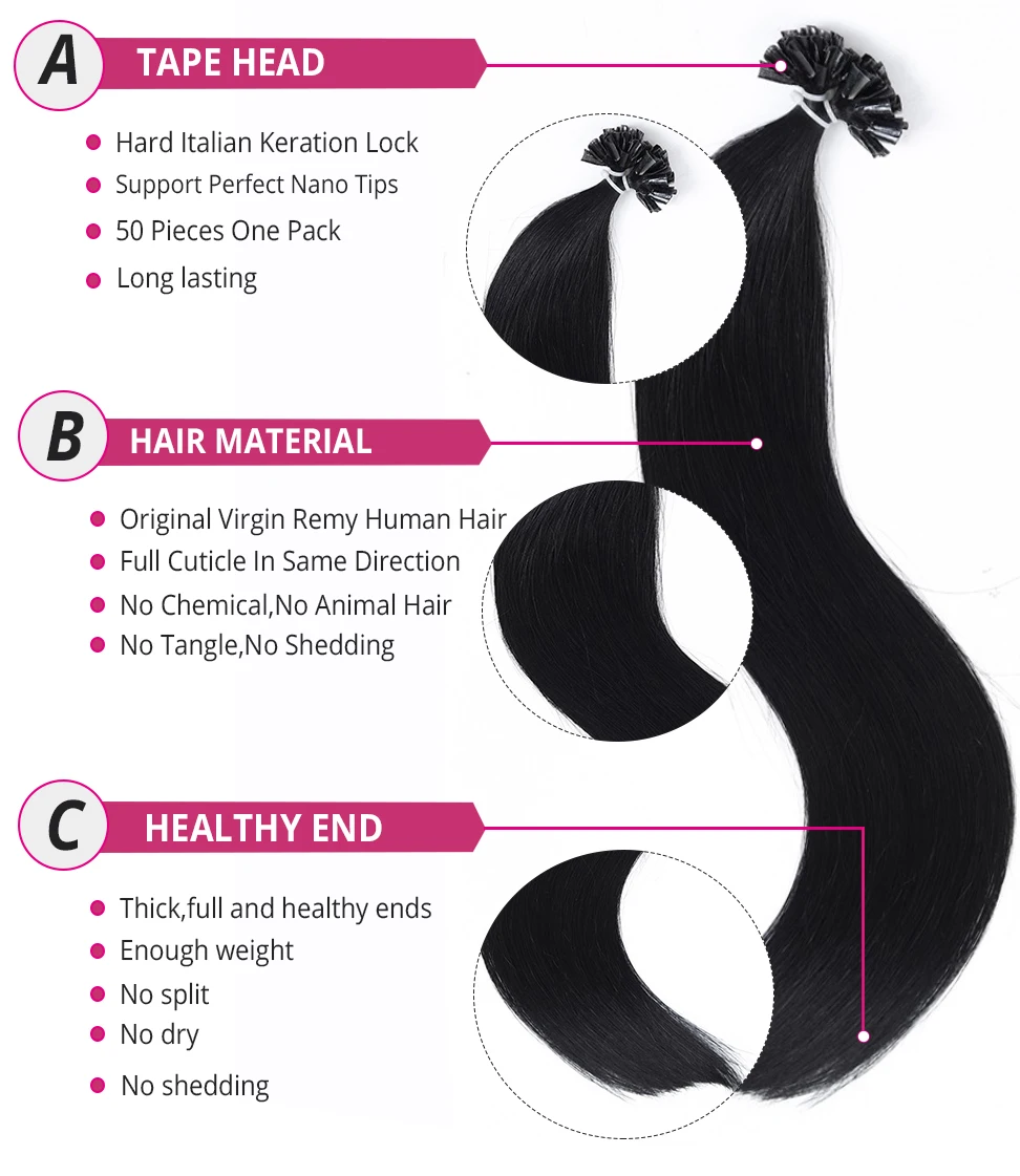 LuxyBeauty Nail Hair 1g/pc 12”-22” Fusion Hair Extensions Straight Remy Keratin Pre Bonded Human Ha
