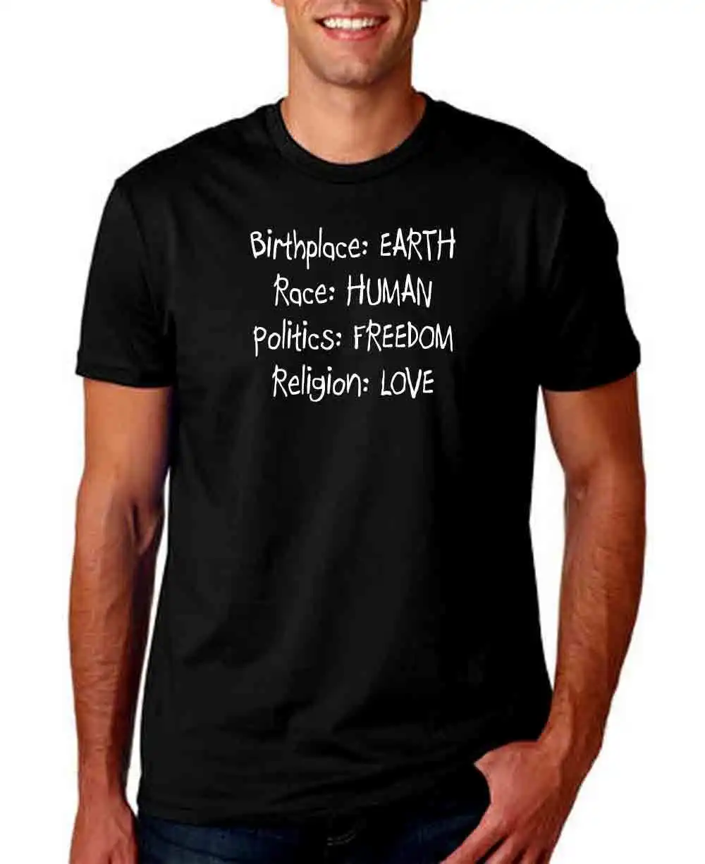 BEST Print T Shirts Men BIRTHPLACE EARTH BLACK MEN T SHIRT RACE HUMAN POLITICS FREEDOM RELIGION LOVE 100