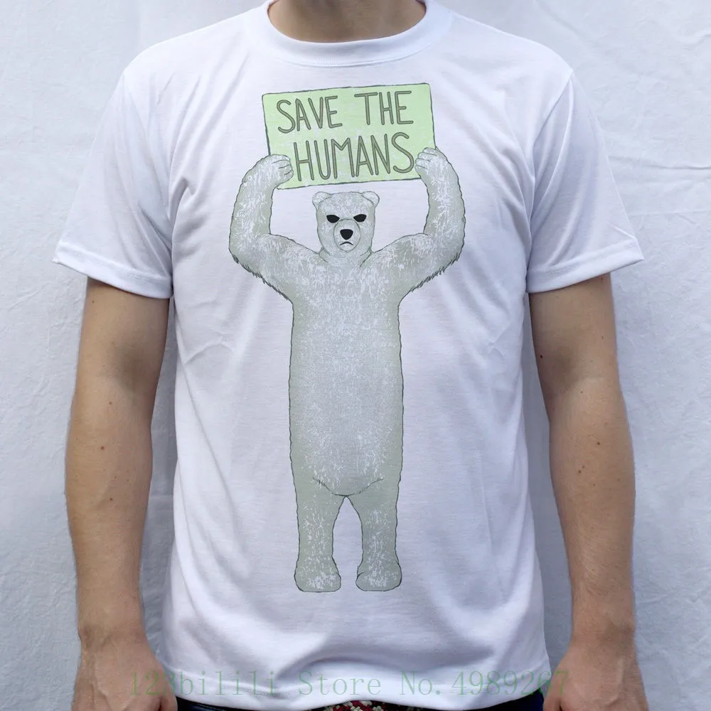 Save The Humans Artwork T Shirt Arctic Bear Top Quality Cotton Casual Men T Shirts Men Free Shippin